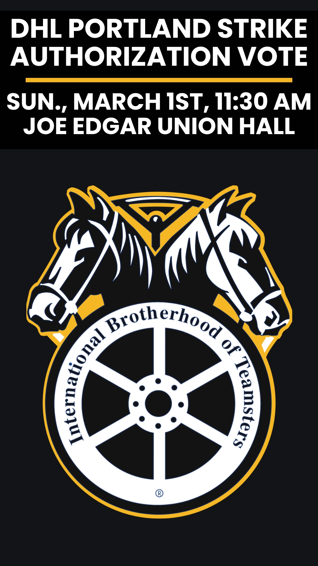 Attention Teamsters Local 162 members employed at DHL Portland. Local 162 will be conducting a secret ballot vote of Local 162 members working at DHL under the Local 162 Driver, Ramp and Clerical Riders.